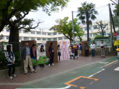 わかばちゃんの横断幕も復活し、ますます盛んな挨拶運動です!