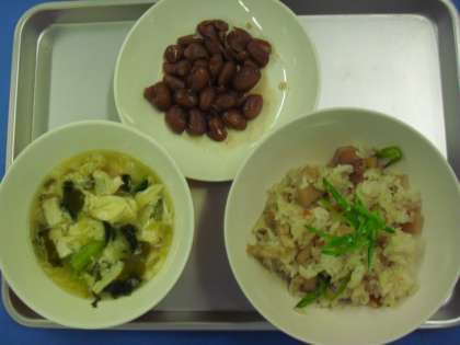 献立名 たけのこご飯 牛乳 かきたま汁 煮豆