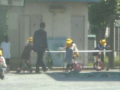 黄色い帽子があちらこちらに見えます。