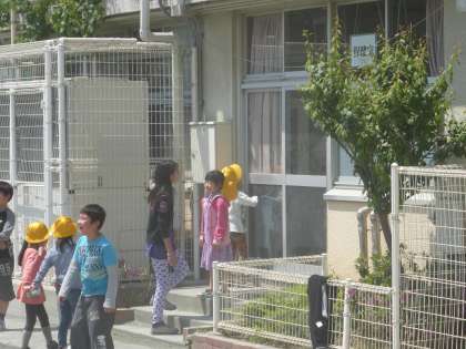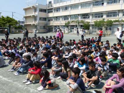 初めて避難訓練に参加した1年生たちは、とても立派に避難できていました。