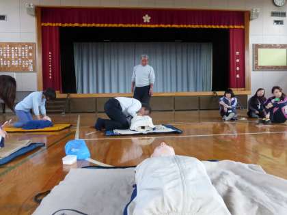 消防署の方のご協力を頂いて、万が一の際の訓練です。