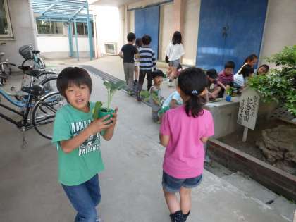 2年生が生活科の学習で栽培する野菜の苗を観察しました。