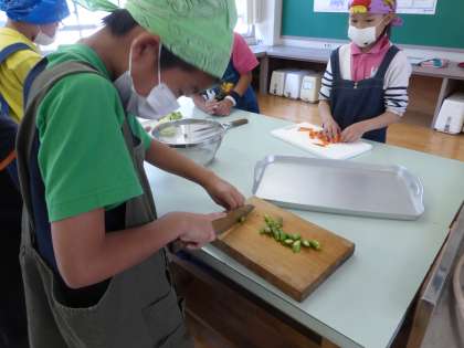 初めての包丁はドキドキでしたが、みんな上手に野菜を切ることができていました。