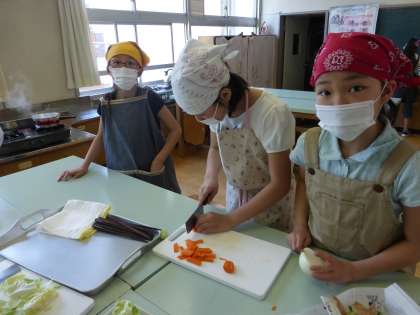 身支度もしっかりできて、すっかり調理実習らしくなりました。