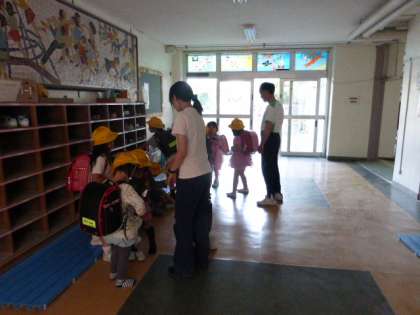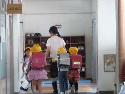 帰りがけ、1年生の玄関で担任の先生との別れを惜しむ子たちの姿がたくさん見られました。