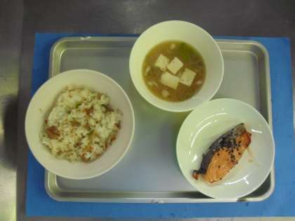献立名 子ぎつねごはん 牛乳 鮭の南部焼き みそ汁