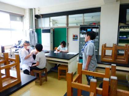 会場の理科室には緊張した面持ちの子どもたちが奇麗に整列しています。