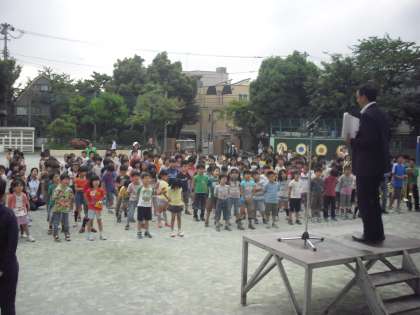 今日は、5年生が川場移動教室に出発したため、少し人数の少ない朝会になりました。