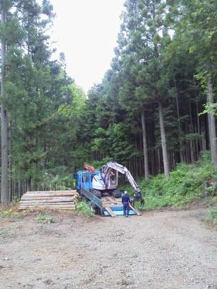 雨乞山下山途中に木材の積み出し作業を見学しました。