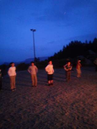 キャンプファイアーを見ながらみんなでジンギスカンを踊りました。