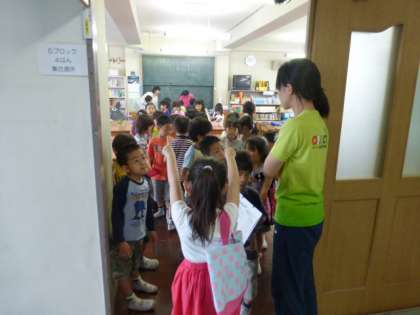 図書室からの帰りにも子どもが先頭に立って上手に整列できました。