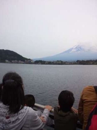 汽船に乗りました。ときおり富士山が姿を見せてくれます。