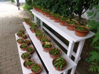 1年生のアサガオも元気いっぱいで、たくさんの芽が出ています。