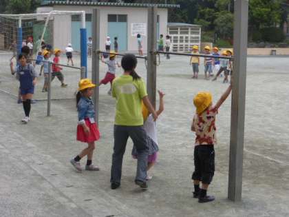休み時間の校庭に目をやると、可愛い1年生たちの黄色い帽子がすぐに見つかります。