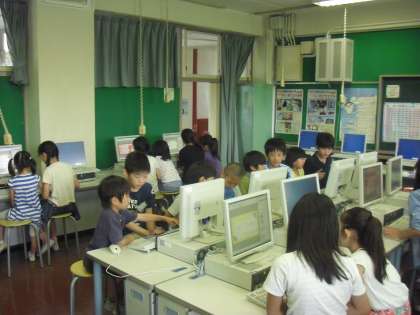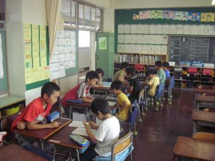 教室・英語ルーム・パソコン室の3つのグループに分かれて、勉強や絵本の読み聞かせ、パソコンを使っての名刺作りやお絵かきなど、いろいろな学習をしました。