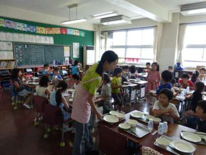 1年生たちもたくさんおかわりをして食缶を空にしていました。