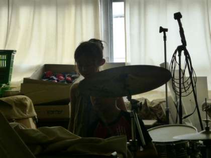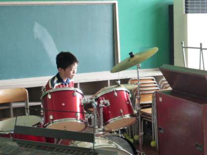 第2音楽室と音楽準備室に分かれて、ドラムの練習が行われました。
