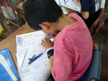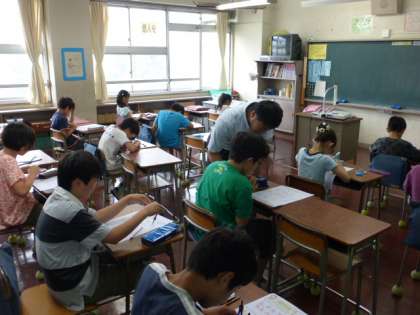 5年生が算数のテストに取り組みました。