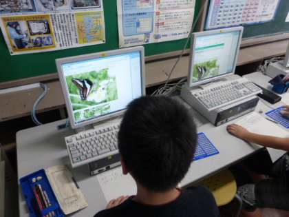3年生が理科の学習で、インターネットを使いチョウについて調べました。