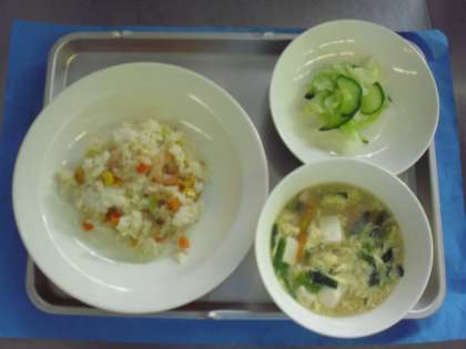 献立名 チャーハン 牛乳 ニラ玉スープ ひとしお野菜
