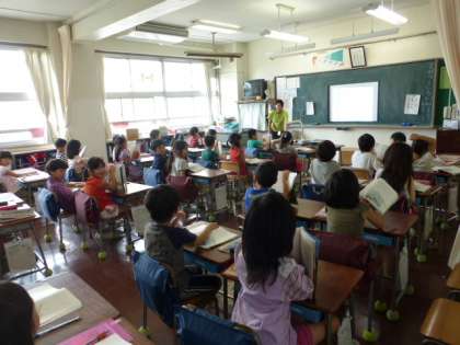 1年生たちはしっかりと教科書を音読して、クモザルの特徴について読みとることができました。