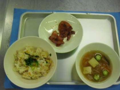 献立名 子ぎつねご飯 牛乳 七夕汁 鶏肉の南蛮焼き