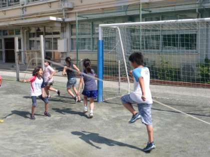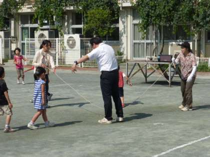 運動朝会で長なわを行いました。