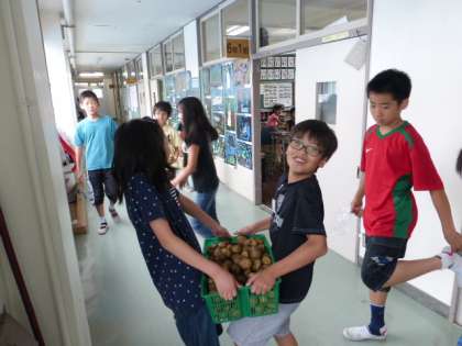 6年生が理科の学習で栽培していたジャガイモが大豊作となりました。