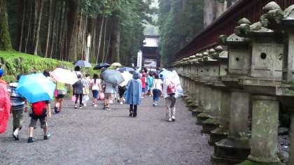 東照宮見学は、降ったり止んだりの天気です。世界遺産だけあって外国人の参拝がとても多いです。