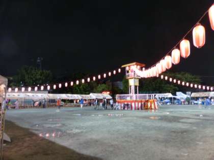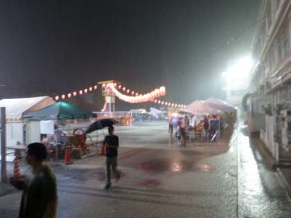 急に強い雨が降ってきたため、盆踊り大会も一時中断。