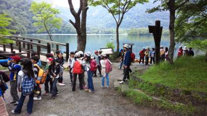 湯の湖半周のハイキングが終わりこれから湯滝を見学します。