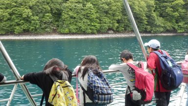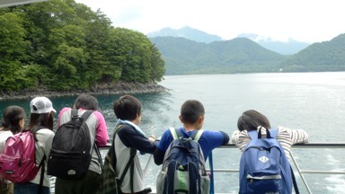 ハイキングの後は、菖蒲が浜から中禅寺湖機船で、立木観音を目指します。中禅寺湖から見える奥日光の豊かな自然を楽しみました。天気が安定しない一日でしたが、立木観音に到着し、バスに乗車したとたんに雨が降ってきました。