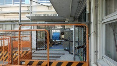 夏休みに入って、第二・第三昇降口が工事のため封鎖しなければならず、ご迷惑をおかけしています。第二・第三昇降口の防火扉設置に伴う工事は、まもなく完了です。次は第四昇降口の防火扉の工事になります。