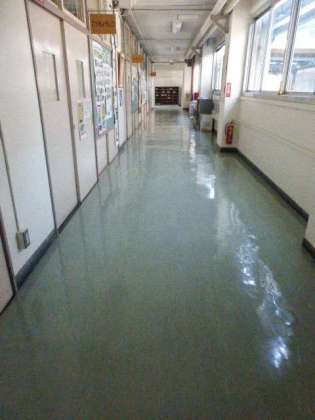夏休み中に主事さんたちが、廊下のワックスがけをしてくれました。