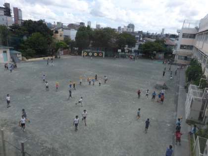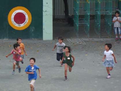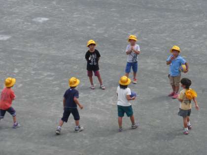 蒸し暑い中でしたがみんな元気いっぱいに校庭で遊んでいます。