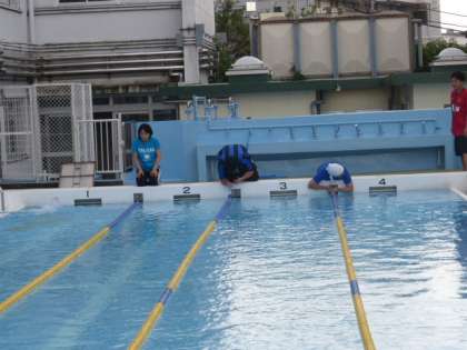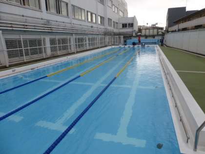 放課後のプールでは水を最高位まで張って、コースロープも設置されました。