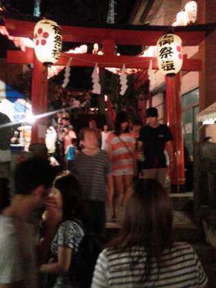 若林三社祭夜の部です。すごい人出で若小の子達もたくさん参加しています。PTAの方によるパトロールに、若林クラブによる夜店と、若林一色のお祭りです。