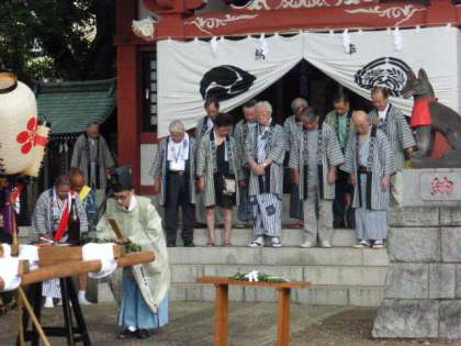 静まり返った境内で神事が行われました。