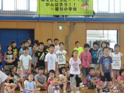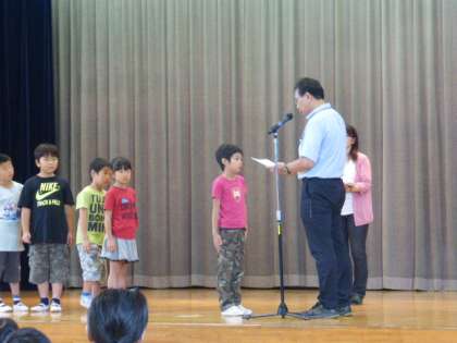 今日の朝会の中で、夏季水泳にたくさん参加した子の表彰がありました。