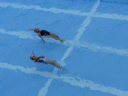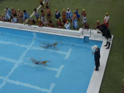 時間の最後に検定が行われ、プールは歓声に包まれていました。
