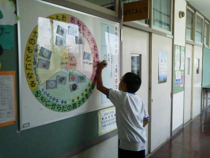 日々、子供たちの注目を集めている栄養黒板の位置が少し移動しました。