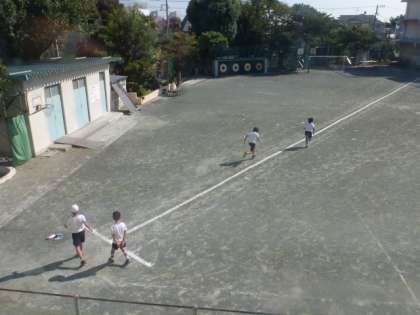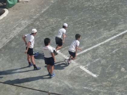 校庭では多くの学年で50メートル走のタイム計測が行われていました。