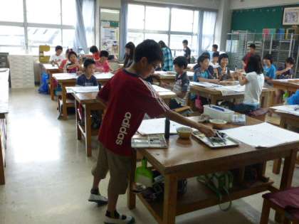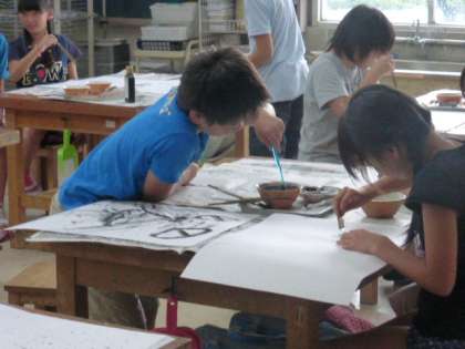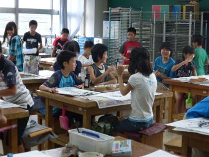 6年生が図工の時間に、絵の具を使った制作に取り組みました。