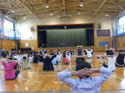 みんなでストレッチをして、たくさん使った筋肉をほぐしました。