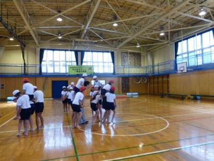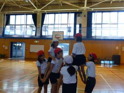5年生が騎馬戦の練習をしました。