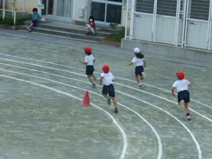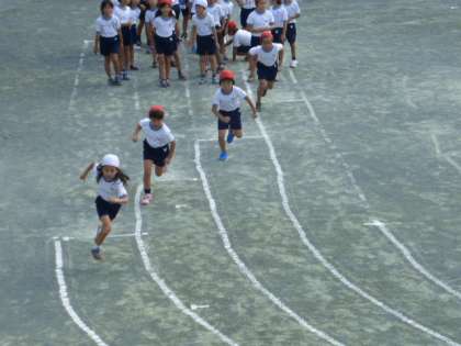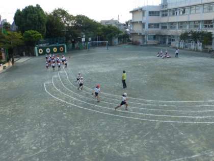 2年生の子たちが徒競争の練習をしていました。