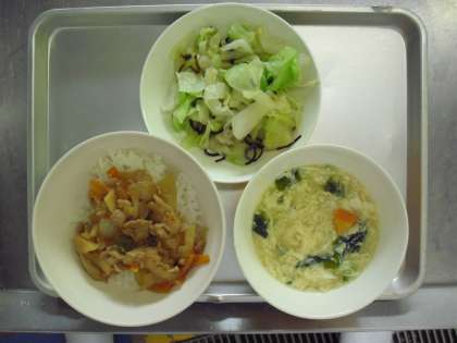 献立名 スタミナ丼 牛乳 キャベツの塩コンブかけ かきたま汁