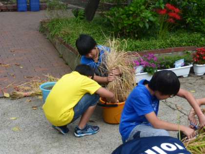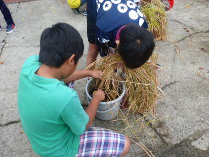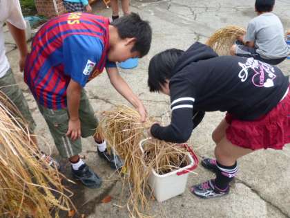 校舎内で一週間乾燥させて脱穀、精米する予定です。