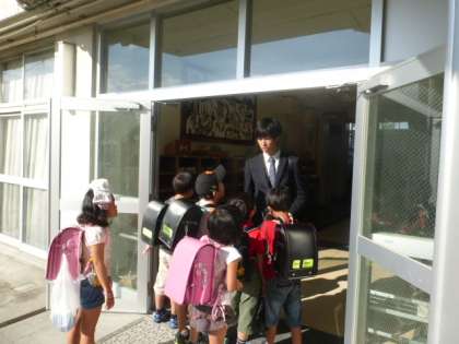 学生ボランティアの先生とも爽やかなあいさつをしていました。
