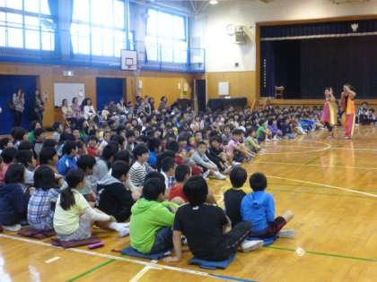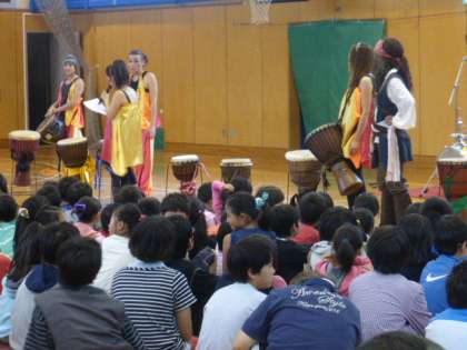 初めてみる太鼓とアフリカっぽいファッションに子どもたちも興味津々のようでした。